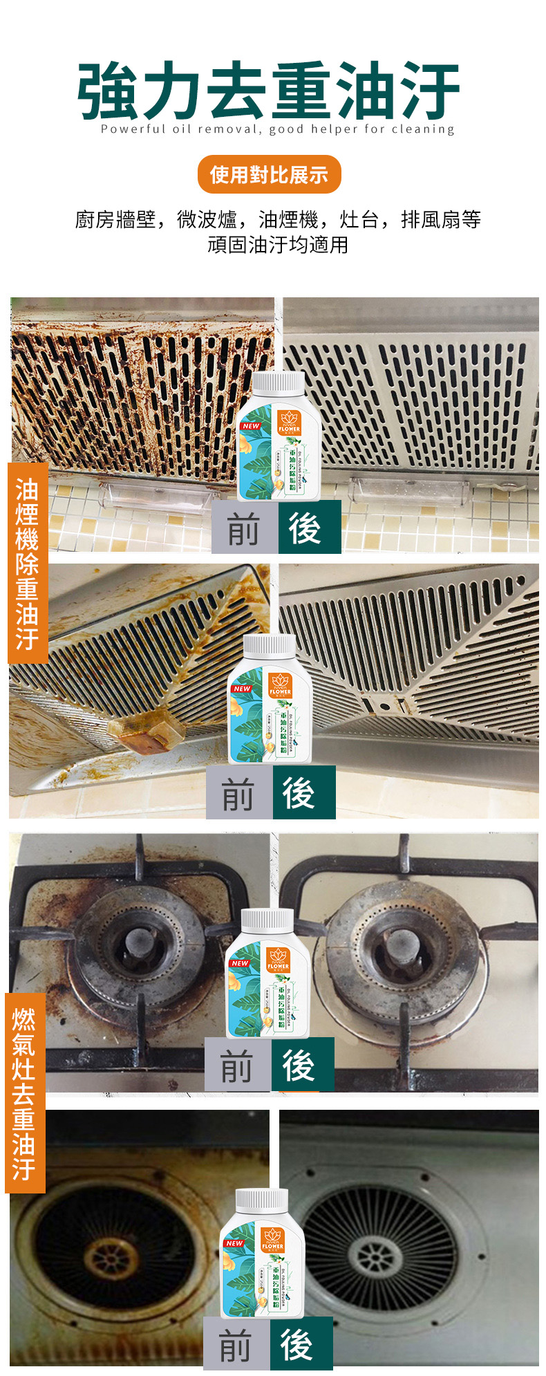 生化酶清潔除垢粉可以輕鬆調配成重油污除油清潔劑,輕鬆去除廚房重油污 100%強力除油,一噴一擦乾淨溜溜,配方清透如水,無香精、無色素、無多餘化學添加,不刺鼻、不傷手,無泡泡殘留,輕鬆包覆油污,廚房清潔推薦,讓你輕鬆擺脫油膩膩的廚房。